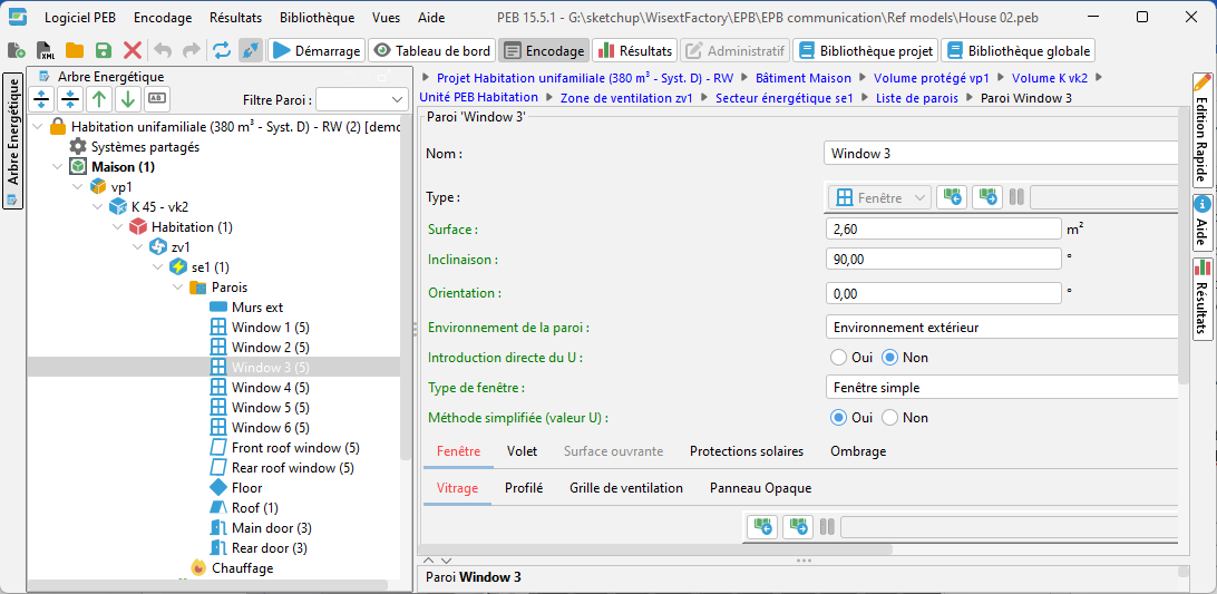 - This method allows you to work mainly in the EPB software, keeping its libraries: only the geometry is retrieved from SketchUp.