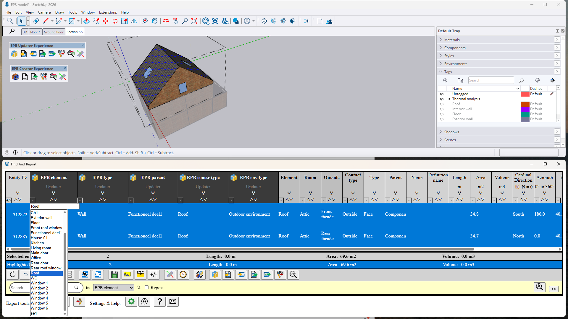 One SketchUp entity for several EPB elements