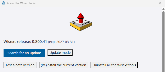 Check that you have the latest version of the Wisext Tools (at least version 0.800.4). Press “Check for updates” and “Test a beta version” to get the latest version.