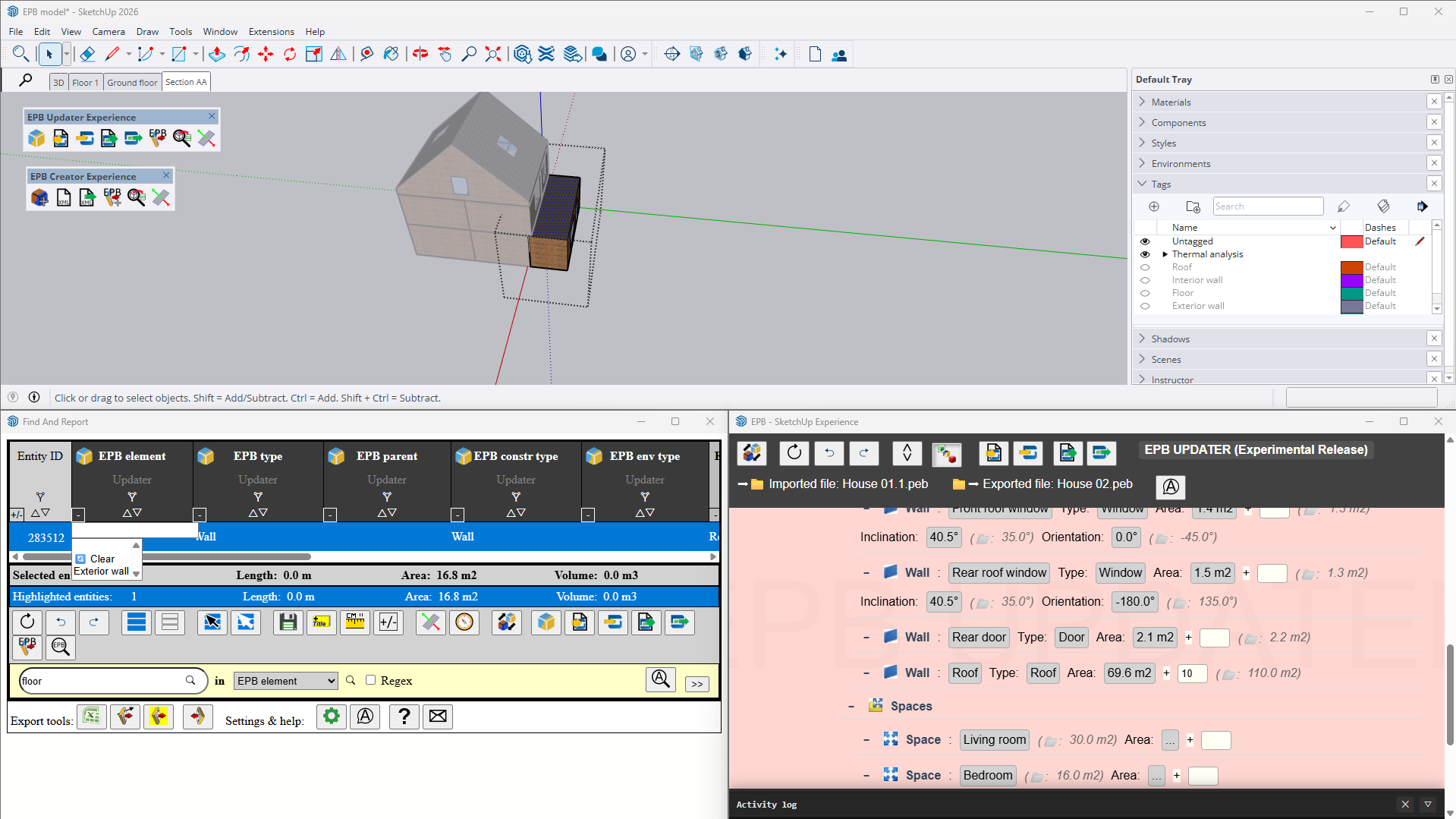 Open SketchUp, the Find And Report window and one of the EPB Updater or Creator windows simultaneously.