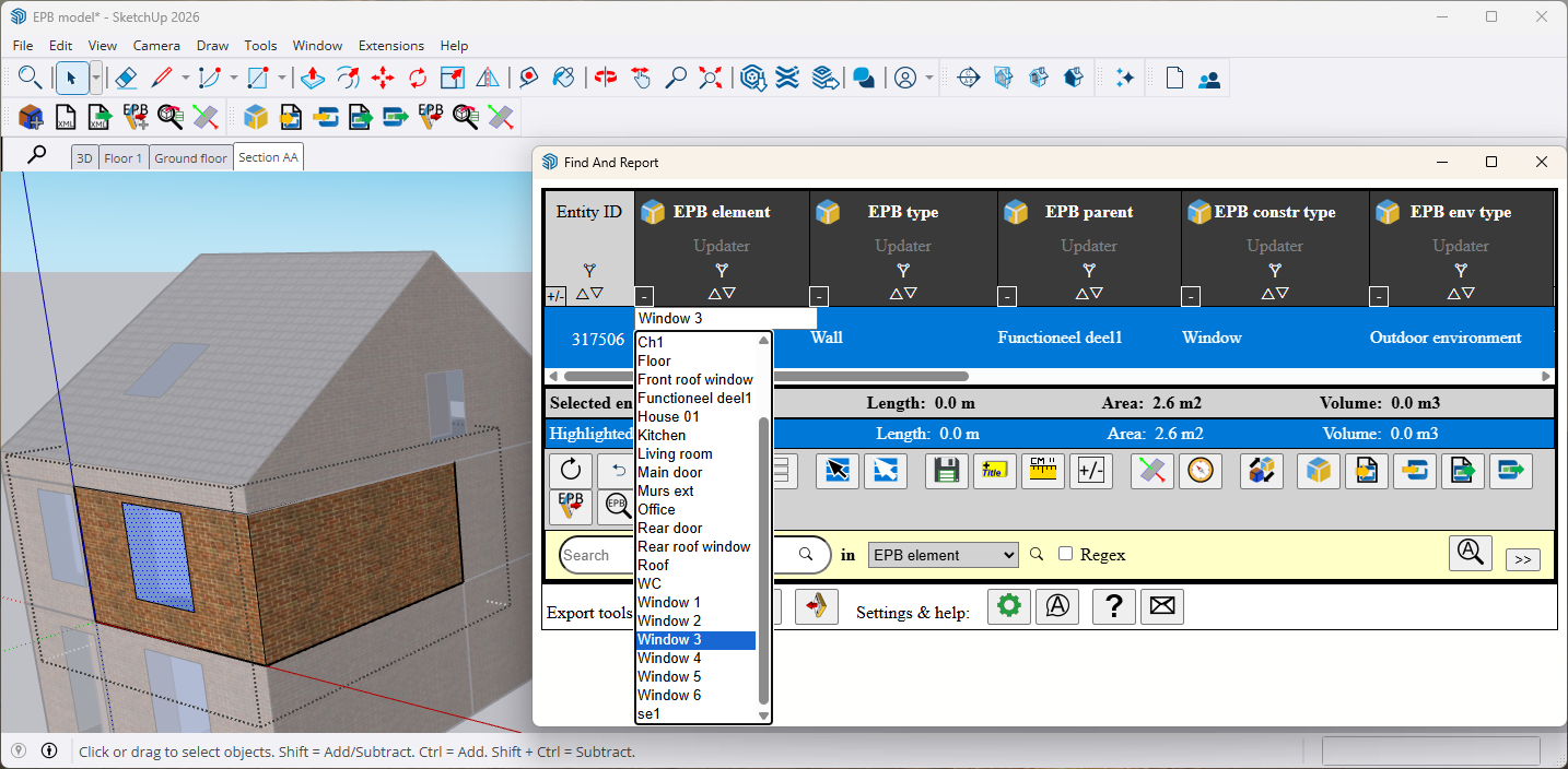 - Koppel de EPB-elementen met de SketchUp-entiteiten: